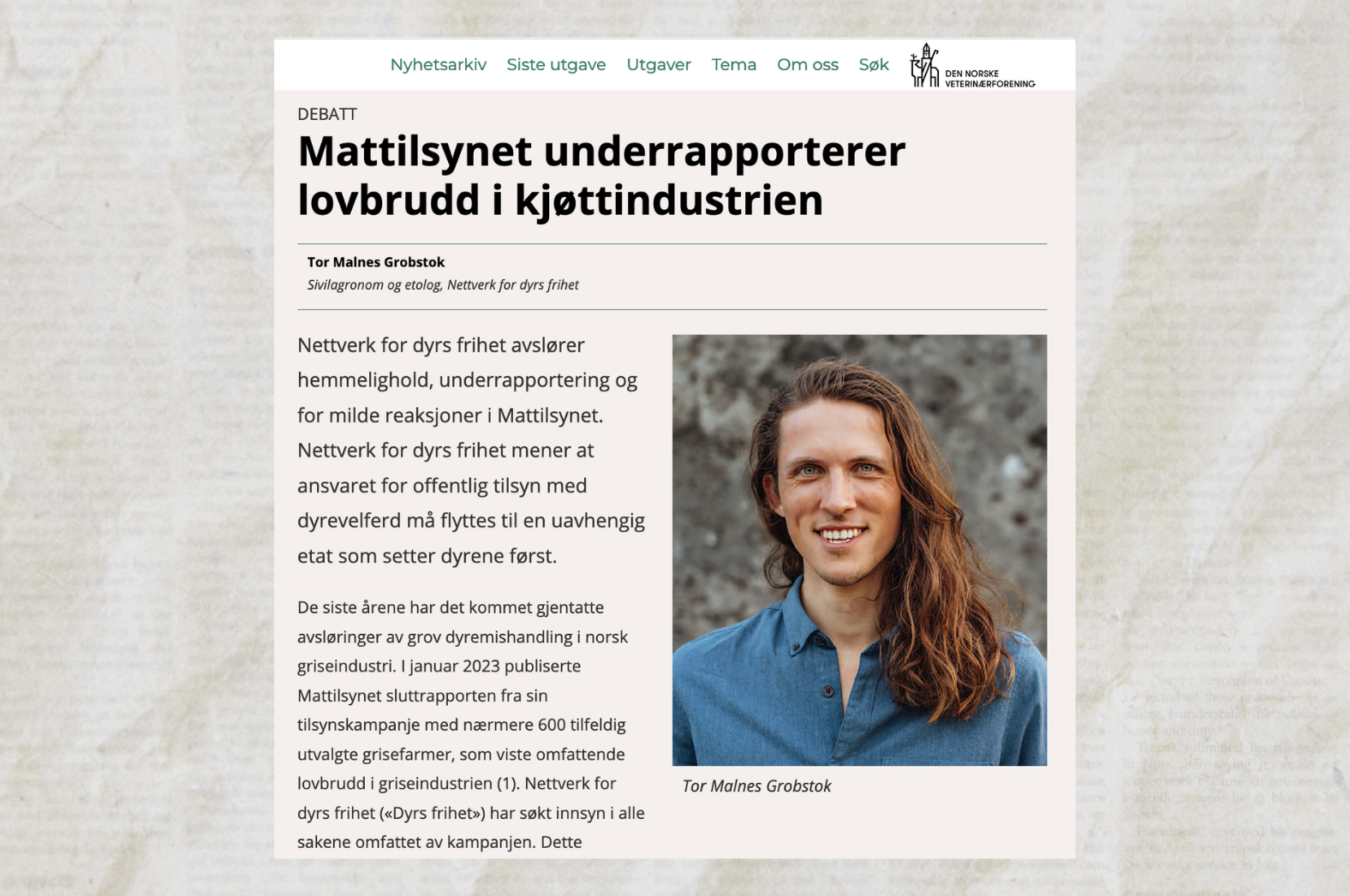 I den siste utgaven av Norsk veterinærtidsskrift, fagbladet for veterinærer i Norge, forteller vi om vår gransking av Mattilsynets tilsynskampanje for gris. Vi mener at det har gått så langt at ansvaret for offentlig tilsyn med dyrevelferd må flyttes til en uavhengig etat som setter dyrene først.